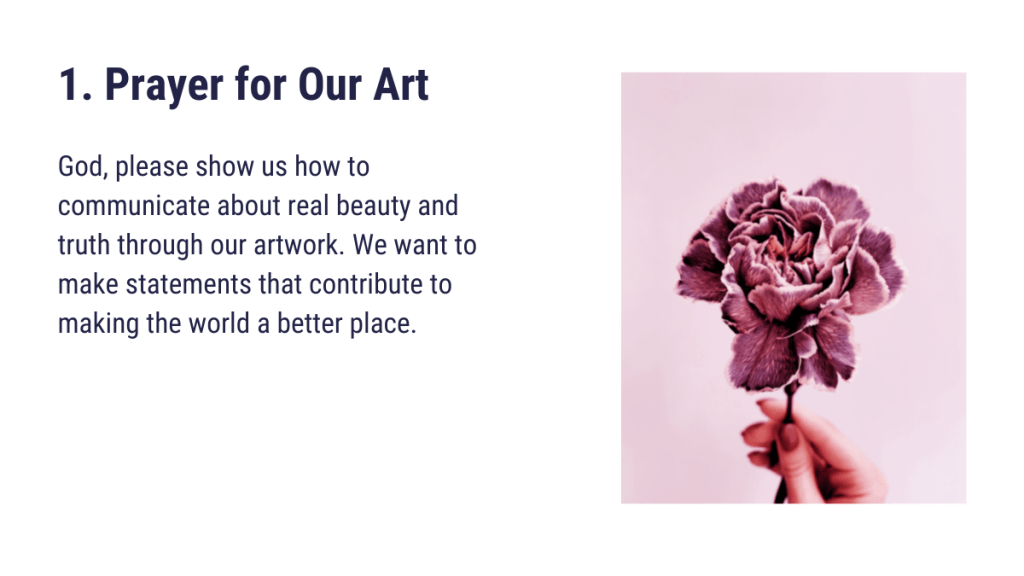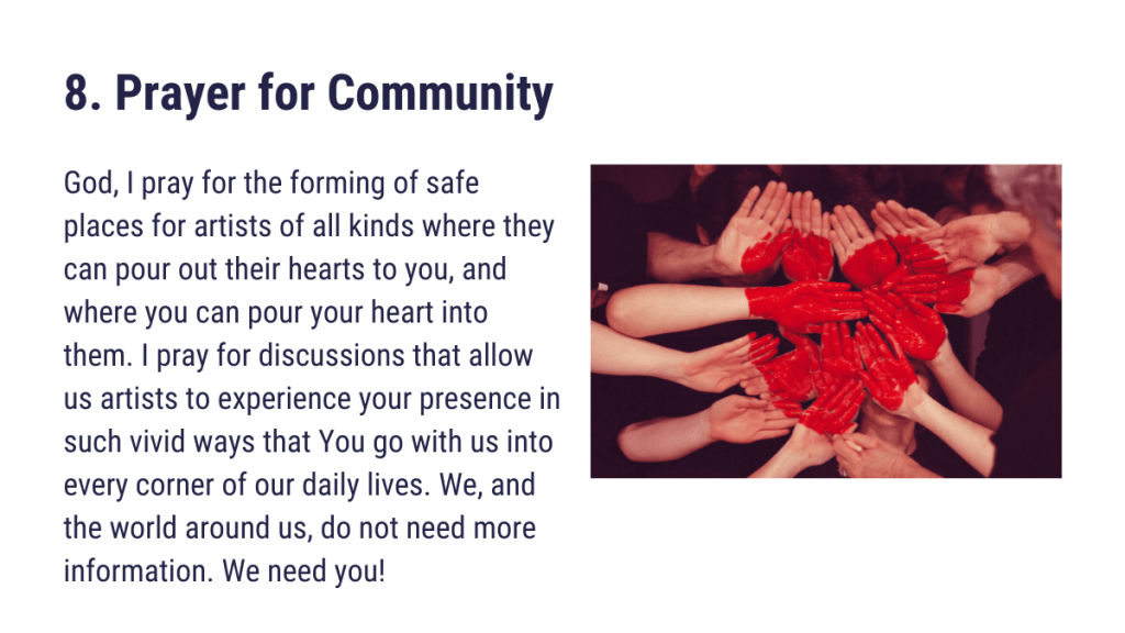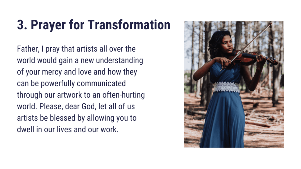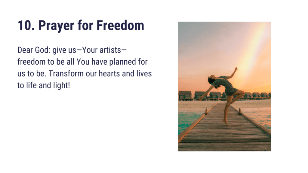 As visual artists, musicians, dancers, and artists of all types we face unique challenges. It can be difficult to know how to bring our requests and concerns to God. Here are ten prayers to help you get started, with topics ranging from meaning in our lives and art, freedom to live out our calling, and empowering artists as a community. We hope these help you on your spiritual journey as an artist!
